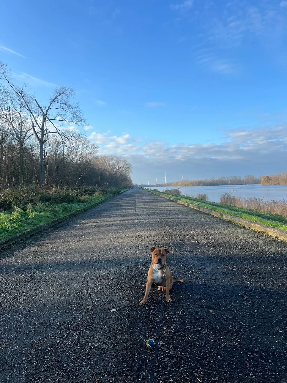 "Super tevreden. Zowel Amber als Lindy zijn betrouwbaar, vriendelijk, begripvol en flexibel. Onze Maurice heeft maar 3 poten én is een Stafford (wel de allerliefste). Niet makkelijk dus om iemand gepast te vinden, zowel Maurice als wij voelden ons meteen op ons gemak. Hij geniet van de wandelingen en exclusieve aandacht. Een echte aanrader dus!"